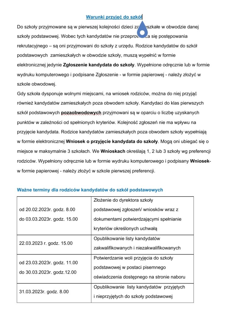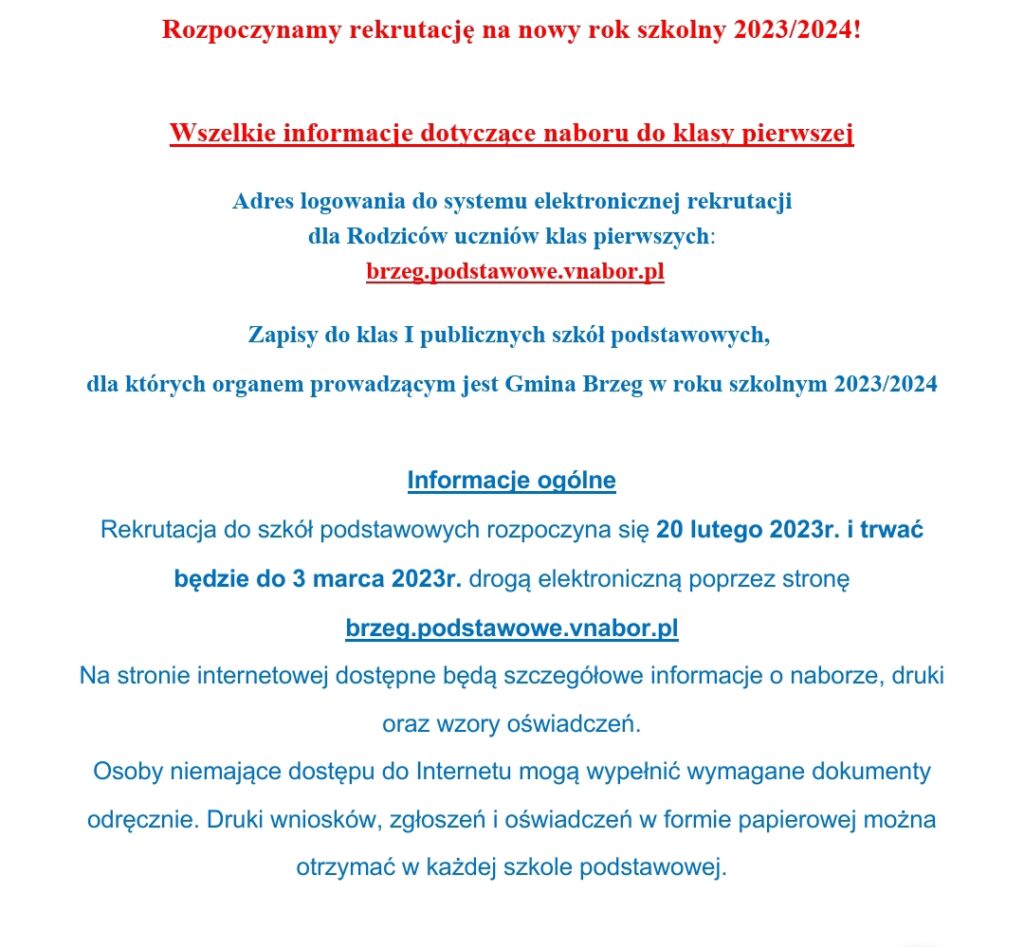 Rozpoczynamy rekrutację na nowy rok szkolny 2023/2024! 21 lutego, 202323 marca, 2023Aktualności, WażneW.T. Kompletna informacja z dokumentami do pobrania znajduje się na stronie BIP szkoły w zakładce Rekrutacja.